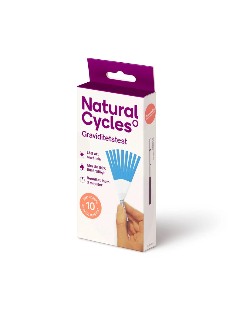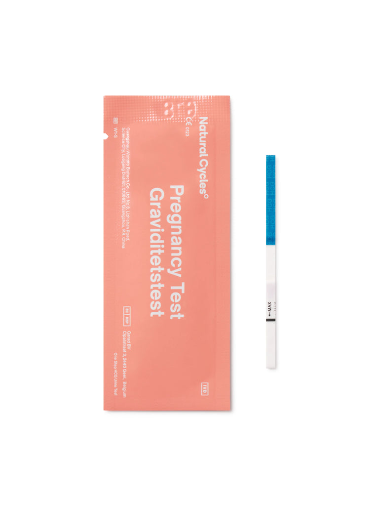The Natural Cycles app will alert you when it’s a good time to take a pregnancy test. Otherwise, we recommend the first day of your missed period. The at-home test strips use a urine sample and reveal results within three minutes. When you upload a positive result, the Natural Cycles app will automatically switch to NC° Follow Pregnancy.