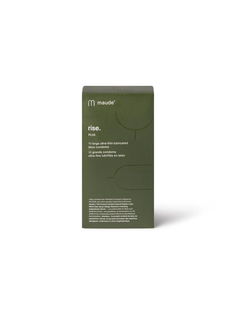 The large ultra-thin, natural latex Rise Plus Condoms from Maude will take your pleasure to the next level. Chemical, fragrance, and spermicide-free, these vegan condoms are triple tested for safety so you can focus on more pleasurable things.